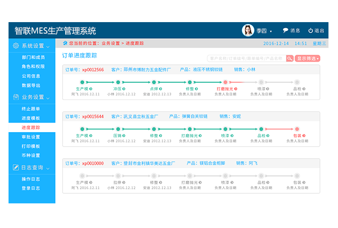 MES软件系统实时监控订单的生产进度、车间人员效率和产品质量管控,同时MES软件系统对生产中出现的 问题及时修正